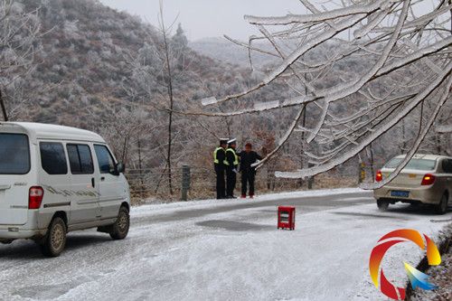 鎮遠縣交警大隊羊場片區中隊民警在冰雪中執勤