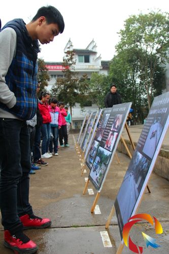 學(xué)生在觀看事故案例展板