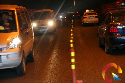 安裝了反光樁的隧道涇渭分明,車輛有序通行