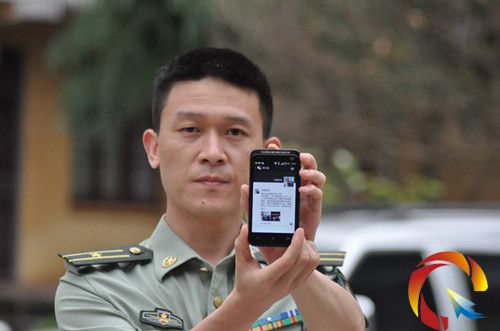 鎮(zhèn)遠(yuǎn)武裝部一位軍官在展示正式上線的微信