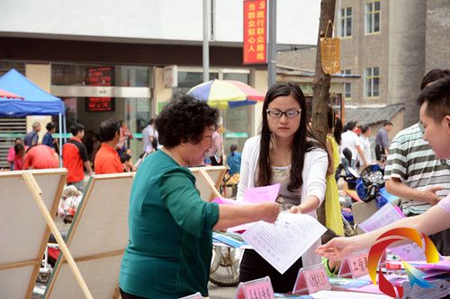 工作人員在發放宣傳資料