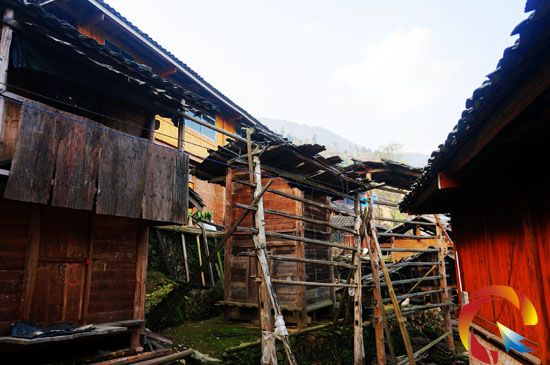 從江縣加榜鄉(xiāng)加車村吊腳樓屋頂用的瓦礫