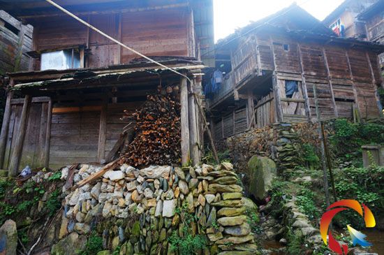 從江縣加榜鄉(xiāng)加車村房屋半山腰而建,吊腳樓大多數(shù)用青石塊墊著