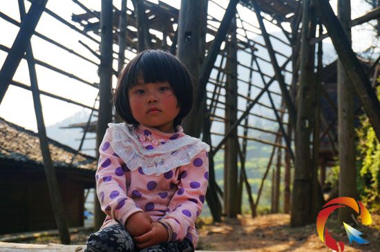 從江縣加榜鄉(xiāng)加車村小孩在禾架下休息