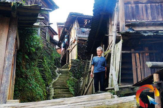 從江縣加榜鄉(xiāng)加車村一老人在房屋前遠(yuǎn)望