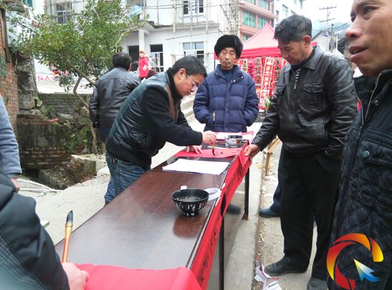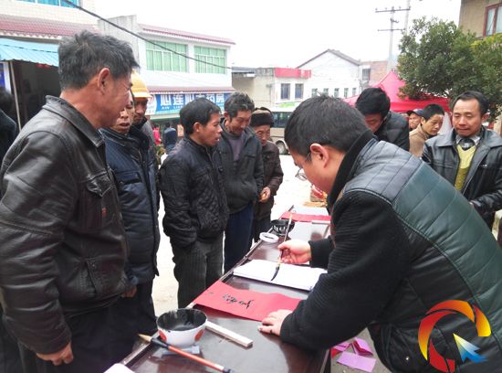 上午10時許,前來趕集的老百姓聽說免費領取春聯后,紛紛圍攏過來,在現場工作人員的幫助下選取自己喜歡的對聯,排隊領取紅紙等候書寫。直到中午2時許,工作人員事先準備的400副對聯的紅紙已一搶而空,為響應前來領取春聯的群眾要求,工作人員又買了200副對聯的紅紙,看到前來領取春聯的群眾這么多,活動現場的書法愛好者、退休老干部等書法能手也是越寫越起勁。一幅幅具有社會主義核心價值觀特色的春聯,受到了群眾的一致好評。