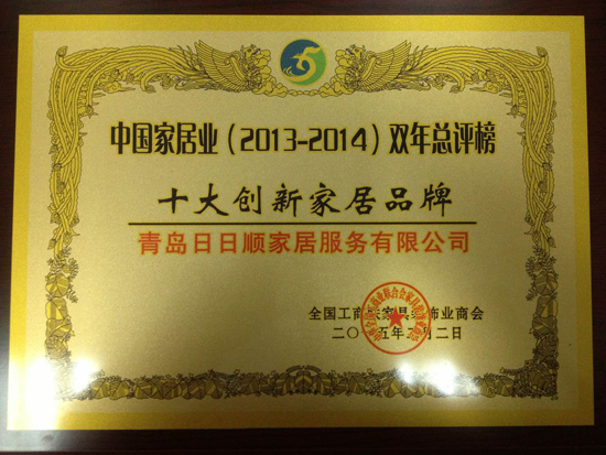 2014年剛剛結束一個月,日日順家居服務在過去兩年的努力就得到了業(yè)界的認可。2015年2月2日,全國工商聯家居裝飾業(yè)協會舉辦的“第十屆中國家居業(yè)總裁(上海)論壇”及“中國家居業(yè)(2013-2014)雙年總評榜”活動在上海隆重舉行,青島日日順家居服務有限公司作為行業(yè)內的標桿企業(yè)應邀參加此次活動。同時,在本次會議上,青島日日順家居服務有限公司獲得“中國家居業(yè)(2013-2014)十大家居創(chuàng)新品牌”,和“中國家居業(yè)(2013-2014)行業(yè)杰出貢獻人物”兩個重量級獎項,日日順家居服務總經理王新杰作為代表參加此次會議并登臺領獎。