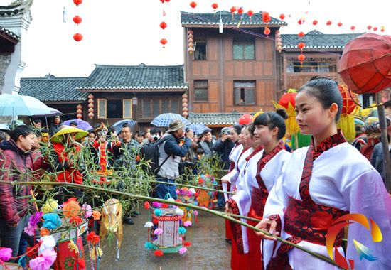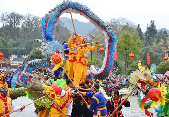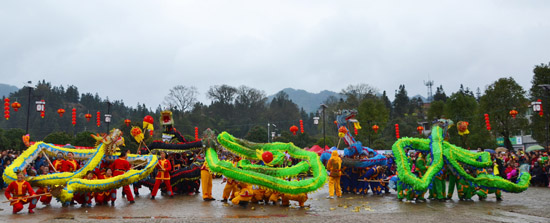本網訊 3月5日,貴州省錦屏縣隆里古城再度沉浸在舞龍狂歡中。當日正值元宵佳節,隆里古城人山人海,精彩絕倫的舞龍舞獅表演,吸引了數千名攝影愛好者和省內外游客。(楊建模)