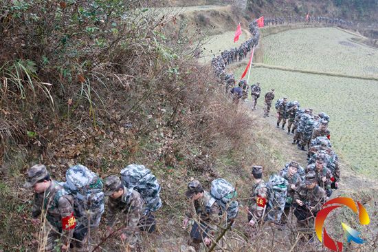 此次拉練以徒步與摩托化相結合的方式,從三穗縣良上革命烈士紀念碑出發,沿原紅6軍團的足跡,重走長征路,先后途經三穗的大巴冶、劍河的岑松、鎮遠的報京、施秉的貴科、臺江的施洞等鄉村,全副武裝徒步行軍60余公里(含強行軍10公里、夜間行軍10公里),摩托化行軍200余公里。期間,還圍繞重塑理想信念開展了瞻仰革命烈士紀念碑、慰問參戰軍人、參觀紅軍渡口、聽講紅軍故事、向學校捐款獻愛心等活動。
