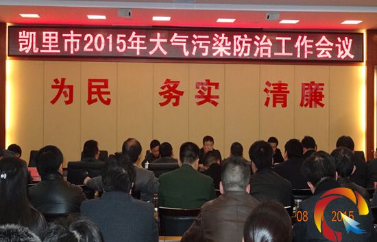 本網訊 2015年1月8日下午,凱里市在行政中心A座5樓會議室召開2015年大氣污染整治工作會議,市領導張淼、涂剛、楊承進、王華、劉仁翔、周哲云、卿尚東及市四大班子其他領導,市直各部門及各鄉鎮(街道)主要領導參加了會議。會議由市人民政府常務副市長楊承進主持。