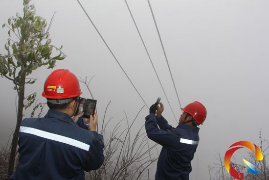 在當天的特巡觀冰工作中,城區分局觀冰小組按工作計劃安排前往位于小高山山頂海拔高度1200多米的10千伏橋微線16號至20號桿之間進行線路特巡觀冰工作。這是城區分局建立易覆冰區域的人工固定觀冰網點之一。凝凍天氣道路濕滑,在經過2個小時的艱難爬行后工作人員終于到達電桿下方。工作人員顧不上渾身摔的疼痛,立刻打開在線監測系統,對覆冰情況進行測量,在經過緊張驗算后,發現此次凝凍天氣下導線覆冰尚在安全運行許可范圍內。