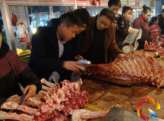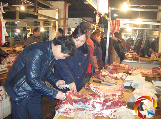 2月12日,州食安辦副主任、州食品藥品監督局副局長李軍一行5人來到凱里市場檢查指導工作,我局檢查組陪同檢查了金玉農貿市場、興凱農貿市場,重點檢查注水牛肉,黔東南食品檢測中心技術人員現場對牛肉進行檢測,發現金玉農貿市場2戶經營注水牛肉,查獲50多公斤注水牛肉,我局已依法沒收并作了無害化處理。(食品股供稿)