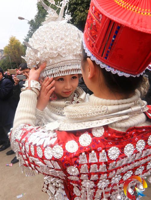 本網(wǎng)訊 3月7日,苗族姑娘盛裝參加慶祝三八婦女節(jié)。當(dāng)日,在凱里市灣水鎮(zhèn),苗族婦女們穿上盛裝參加慶祝活動(dòng),她們穿上自己的一針一線繡出來(lái)的盛裝和定制的銀冠,跳起蘆笙舞,對(duì)山歌,展示苗族女子心靈手巧聰慧,秀一秀自己的勤勞美麗和當(dāng)?shù)孛缱鍕D女已經(jīng)過(guò)上了幸福快樂(lè)的生活。