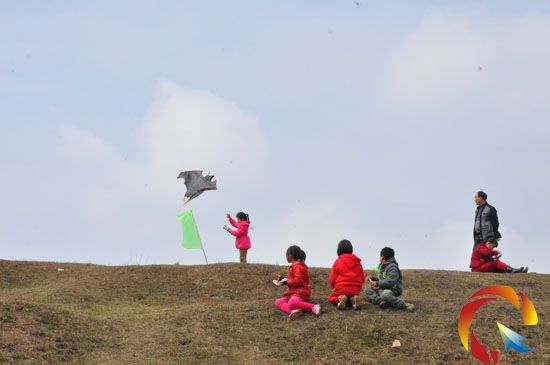孩子們在虎長坡放風箏