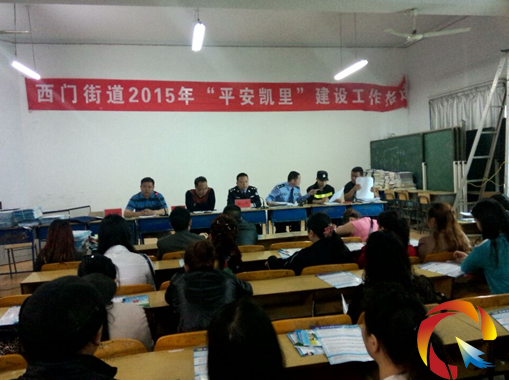 2015年4月17日下午3點(diǎn)30分,西門街道黨委辦事處、西門派出所在凱里市第二中學(xué)階梯教室召開轄區(qū)特種行業(yè)業(yè)主“平安凱里”建設(shè)工作推進(jìn)會(huì),參加會(huì)議的人員有街道黨委書記吳興波、街道辦事處副主任、街道政法委書記吳英富、西門派出所所長歐亞君及西門街道綜治辦、派出所、轄區(qū)旅店、網(wǎng)吧、酒吧、廢舊物資收購點(diǎn)等業(yè)主共計(jì)200余人,會(huì)議由街道辦事處副主任、街道政法委書記吳英富主持。