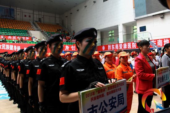 本網(wǎng)訊 為積極響應“舞動凱里城 展巾幗風采 共筑中國夢”---2015“愛康杯”凱里地區(qū)百萬婦女民族健身操、健身舞展示大賽。凱里公安精心挑選13名警花和6名帥警參加此次大賽,通過三天激烈角逐,凱里公安代表隊摘取桂冠。