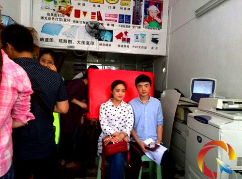 5月20日中午,記者前往凱里市民政局結婚登記處,在距離該處還有幾百米的復印店內,記者感受到一股結婚浪潮來襲。在一個10平米的店內,聚集了近20人,有人在復印身份證、戶口本等,有人則在一塊紅布前面微笑著拍結婚照片……