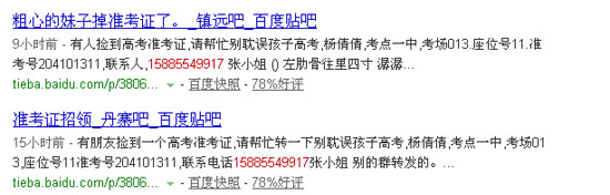 據了解,每到高考前,網上常常會出現此類假消息,有些帖子所留電話已被不少網友證實為吸費電話。因此,當你撿到準考證后,不妨直接送到考點或者當地的派出所,這樣能更快、更有效地幫助考生。此外,讀者看到此類信息,在轉發之前最好簡單核實。同時,也要提防吸費電話等利用善心的詐騙手段。