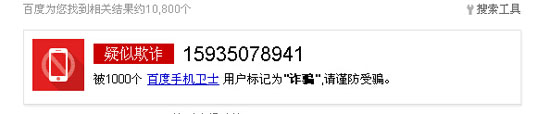 除此之外,記者還通過查詢發現該電話歸屬地為山西,百度提示為“疑似欺詐,被1000個用戶標記為詐騙,請謹防受騙。”