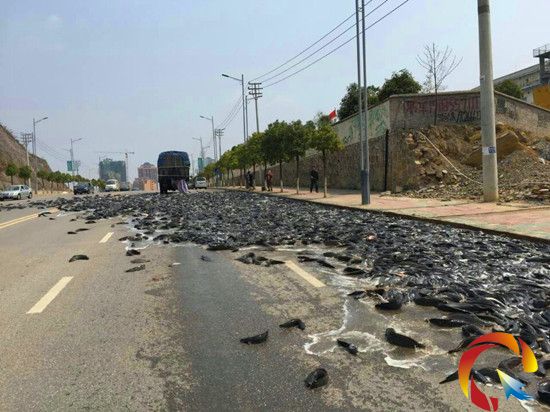 運(yùn)輸司機(jī):還沒(méi)上完坡 魚(yú)灑了一地