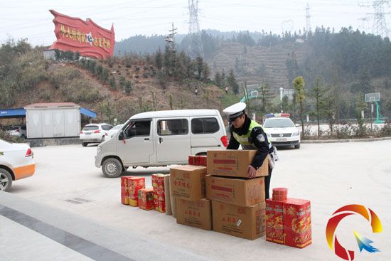 民警卸下煙花炮竹,移交黎平治安大隊處理