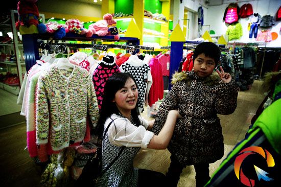 院長奶奶朱蘭給羅奇盼購買夏天的衣服。陸書明 攝