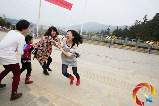 羅奇盼在紅黎平紅十字醫務人員的陪同下,在南泉山公園玩得好開心。陸書明 攝