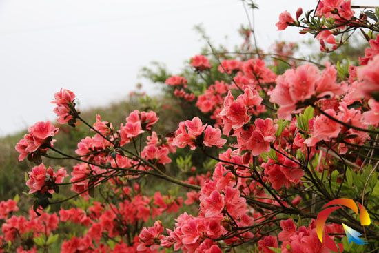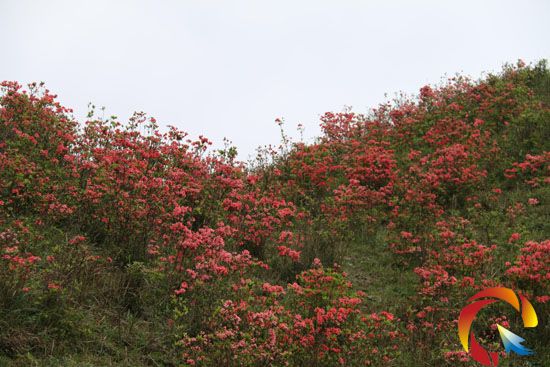 登上那雄姿橫亙的六背山,您會看到火紅火紅的杜鵑花在青山綠樹之間云蒸霞蔚,一團團一簇簇,開得那么熱烈、那么絢麗,燦若蒸霞,艷蓋桃李。朵朵花兒如紅色的瑪瑙,迎風玉立,嬌艷欲滴,花瓣兒密密匝匝,蕊靠著蕊,瓣貼著瓣,相互依偎,競相輝映。