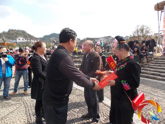 本網訊 2月15日下午,雷山縣丹江鎮利用縣城趕集日在木鼓廣場舉行2015年人口福利基金發放儀式。
