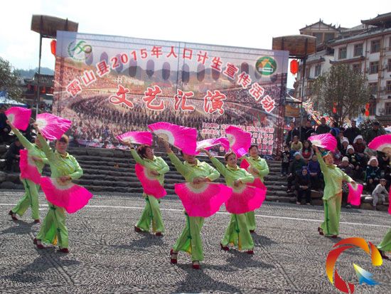 圖為2月15日文藝工作者在現場表演計生宣傳