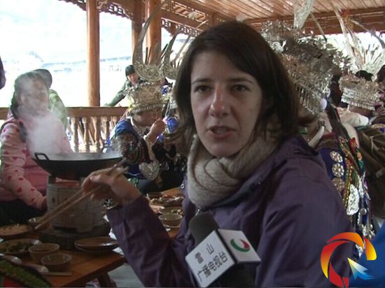 法國(guó)游客:我來(lái)這里旅游我看到很漂亮的地方,漂亮的人,漂亮的衣服,那這里他們告訴我可以吃飯,所以我,很開(kāi)心和大家一起吃飯。