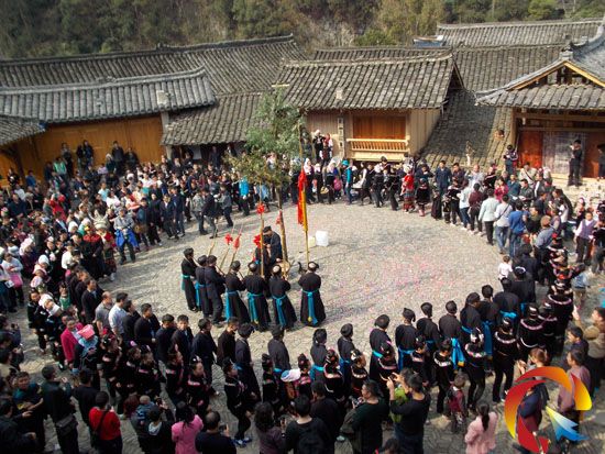 據了解,第二、第三天銅鼓入戶祝福,祭師帶著11位引龍助手,抬著銅鼓,帶著蘆笙,邊走邊擊鼓吹笙,挨家逐戶,繞堂屋轉圈,恭喜全家男女老少進財,福壽安康。他們每到一家,主人以攔門敬酒款待并贈送每人一樣禮品(毛巾或紅布帶)。銅鼓蘆笙游寨進家祝福后,將銅鼓安放在村里,到第四天歡跳銅鼓蘆笙盛會時,再去“請鼓”進場共享歡樂。同時,舉辦了水牛“打架”、苗族飛歌、情歌、撥河、籃球和文藝晚會等活動。今年活動項目比馬年多,內容也豐富多彩,為羊年增添了濃濃的異彩�;顒映掷m到“丙午”日(3月31日)。