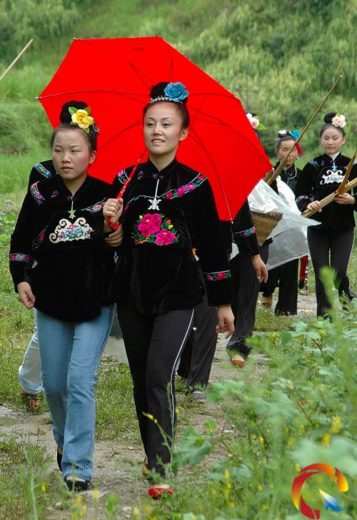 每當(dāng)一年一度的爬坡季節(jié)來臨,青年男女們借趕集相遇機會,或由男方請求,或由女方邀請,決定某日在女方寨子某個地點舉行爬坡。商定后,被邀請的男青年再通知附近村寨的青年們屆時一起參加。爬坡那天,鄰近村寨的青年男女們精心打扮,從四面八方匯集于山坡上。這一天整個山坡上將匯集數(shù)千人,坡上一圈圈,一叢叢的男女青年游方唱歌、吹笙、踩鼓、他們以此為媒介尋友覓伴追求知音,到處洋溢著節(jié)日歡樂的氣氛。