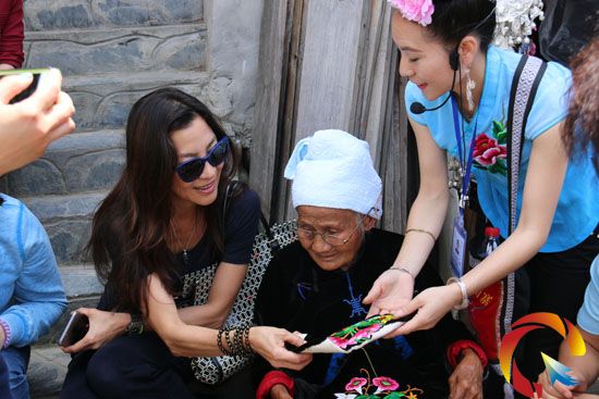 本網訊 5月24日,應貴州旅游創新產業發展基金邀請,大型史詩電影《天佑我心》主創團隊,國際著名影星楊紫瓊一行走進西江千戶苗寨,進行《天佑我心》前期選景拍攝準備工作。