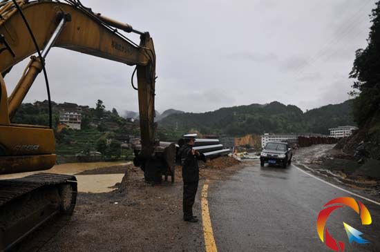 災情發生,雷山立即啟動應急預案,縣委書記黃清發、縣長袁剛分別率隊到災情嚴重的郎德和望豐兩鄉鎮組織指導開展搶洪救災工作。8日恰是高考的第二天,為避免通往雷山民族中學的雷榕公路再次發生塌方,確保學生安心高考,兩頭的幾臺挖機在現場隨時待命,10多名公安干警一大早堅守在現場,為學生高考保暢通。(雷山縣委宣傳部)