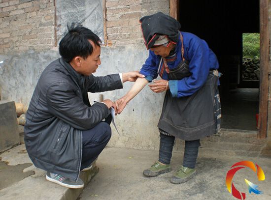 吳德兵,男,1975年生于龍場鎮華界村看牛坪組,受其父親的影響,從小便迷上了“醫生”這個行業,當時龍場鎮醫療條件落后,醫療行業管理極不規范,但吳德兵憑借對“醫生”行業的熱愛以及立志治病救人的理想,在成年后義無反顧的追隨父親做了村里的“赤腳醫生”。直到2006年9月,已經31歲的他才在龍場鎮衛生院的推薦下進入黔東南民族職業技術學院進行了為期三年的社區醫學學習,2009年9月畢業后吳德兵放棄凱里市眾多診所的邀請,秉持著對父老鄉親的關懷毅然回到家鄉繼續擔任鄉村醫生,做起了村民的“健康衛士”。在2013年底并村之前,原華界村是一個由苗族和革家人組成的8個自然村寨,共有2057人,村民普遍文化素質偏低,交通不便,村民的就醫問題、預防保健及獲取衛生知識的希望就全部寄托在了村內唯一的醫生吳德兵身上。上到70高齡的老年人、下到0到6歲幼童日常的頭疼腦熱,以及糖尿病病人、高血壓病人、重性精神病病人、孕產婦、結核病病人的求醫問藥,甚至包括村里的水源站點的管理,都是吳德兵的工作內容,背著藥箱走鄉串寨、看病、隨訪就跟一日三餐一樣正常。