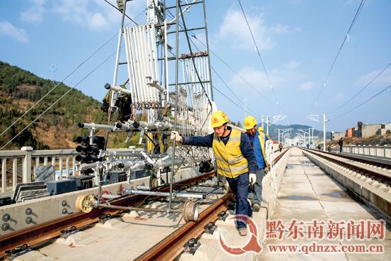 該客運專線貴州境內全長559.5公里,東起玉屏自治縣,經凱里、貴陽、安順,由盤縣進入云南,并與在建的貴廣、渝黔、成貴等鐵路相接,貴州段預計2015年春節后具備聯調聯試條件, 5月正式開通運營,屆時長沙乘坐火車至貴陽將由現在的12小時縮短為2小時。為實現按期通車目標,鐵路工人們加班加點奮戰在滬昆高鐵線上進行最后沖刺。(彭慶模)