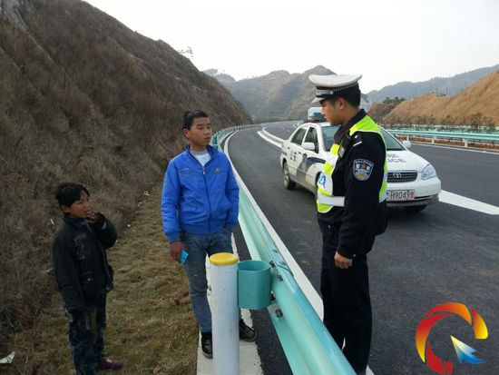 2015年1月22日16時40分,黔東南高速交警十中隊民警巡邏至余安高速余凱段上行線43km+600m處時,發現有兩個小孩在高速路邊玩耍。民警上前詢問得知這兩名小孩的母親打電話到家里讓他們來此處接他母親,民警立即把小孩帶到護欄外安全地方。此時對面車道突然走來一名婦女和一個小孩,民警立即提示其注意安全,并通過詢問得知該婦女即小孩的母親。