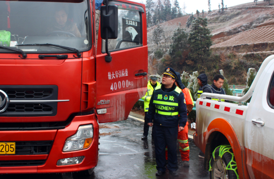得知這一情況,凱里高管處黃平路政執(zhí)法大隊(duì)連夜聯(lián)合高速交警、橋隧站、養(yǎng)護(hù)站、應(yīng)急中隊(duì)等部門對(duì)凝凍路段進(jìn)行撒鹽除冰,但因下雨量增加且氣溫持續(xù)下降,結(jié)冰情況加劇,撒鹽施工車輛無(wú)法作業(yè),救援工作被迫停止。