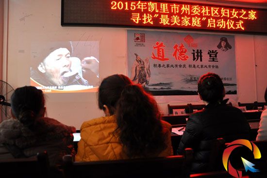 啟動(dòng)儀式首先由州婦聯(lián)副主席吳永宏宣讀由州文明辦、州婦聯(lián)聯(lián)合下發(fā)《關(guān)于開(kāi)展2015年度“明禮知恥·崇德向善在家庭”主題活動(dòng)的通知》文件,觀看了王啟英孝老愛(ài)親事跡宣傳片。