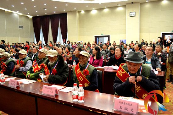 活動(dòng)現(xiàn)場,主辦方請來了分散在全省各地近20名抗戰(zhàn)老兵代表,為他們送上錦旗、鮮花、紅包等。現(xiàn)場所有人員還為老兵演唱《老兵頌》,表達(dá)敬意。