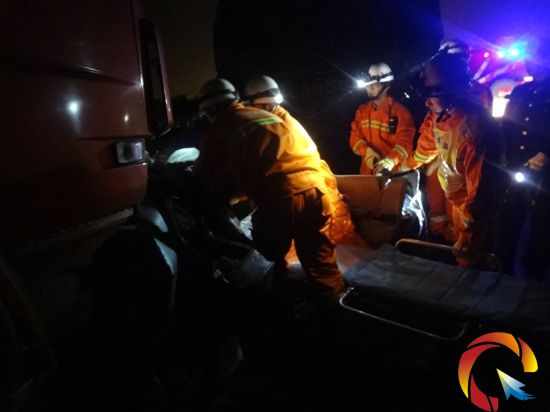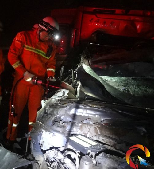 消防官兵到達(dá)事故現(xiàn)場后發(fā)現(xiàn)一輛大貨車追尾小轎車,導(dǎo)致小轎車的車頂和車頭嚴(yán)重受損,兩名30多歲的男子被困車內(nèi),經(jīng)在場的醫(yī)護(hù)人員確認(rèn)已無生命跡象。了解情況后,消防官兵使用液壓破拆工具組對轎車的車頂進(jìn)行破拆,將車頂破拆掀開后,再對車門進(jìn)行破拆,同時,官兵們小心翼翼地將卡住被困人員的腰部、腿部等周圍的異物進(jìn)行剪除和擴(kuò)張。經(jīng)過1個多小時的努力,兩名男子被成功救出并轉(zhuǎn)交醫(yī)護(hù)人員。