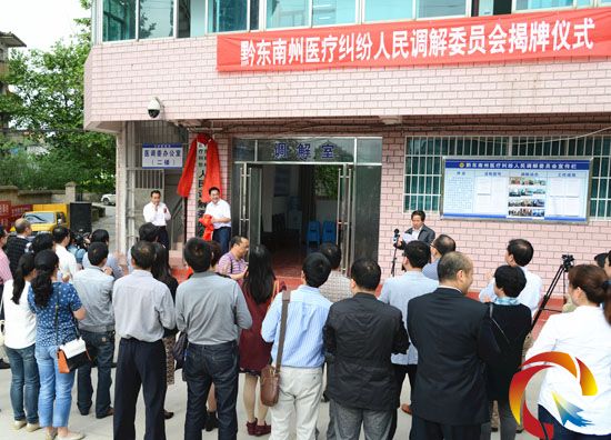 本網訊 4月30日,黔東南州醫療糾紛人民調解委員會揭牌儀式在黔東南州群眾工作中心舉行。州委副書記、州委政法委書記桑維亮,州人民政府副州長潘亮,州法院、州檢察院、州公安局、州司法局、州衛計委、州人民醫院、州中醫院、貴醫第二附院負責人及相關科室負責人及州醫調委專兼職人民調解員代表參加儀式。州司法局黨組書記、局長李本山主持儀式。