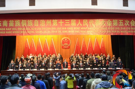 本網(wǎng)訊 (記者 楊秀福 劉承宇 潘開(kāi)榮 攝影報(bào)道)2月3日下午,黔東南州第十三屆人民代表大會(huì)第五次會(huì)議在凱里隆重開(kāi)幕,出席會(huì)議的人大代表們肩負(fù)全州人民的重托,滿懷喜悅和憧憬,步入會(huì)場(chǎng),聽(tīng)取州長(zhǎng)廖飛所作的政府工作報(bào)告。會(huì)議號(hào)召,緊密團(tuán)結(jié)在以習(xí)近平同志為總書(shū)記的黨中央周?chē)�,在州委的正確領(lǐng)導(dǎo)下,團(tuán)結(jié)一心,振奮精神,開(kāi)拓創(chuàng)新,銳意進(jìn)取,共同創(chuàng)造黔東南更加幸福美好的未來(lái)!