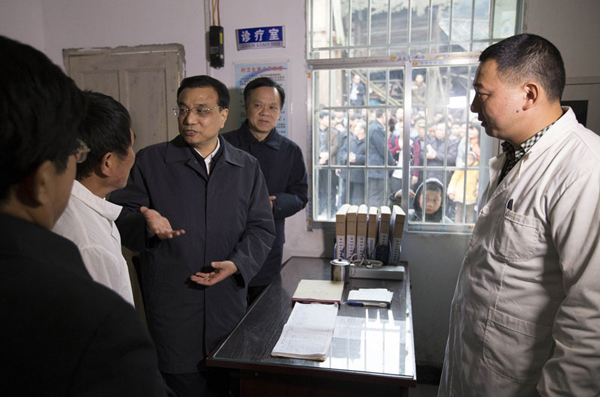 李克強13日來到貴州黎平縣蒲洞村衛生室,關心村醫補貼是否到位,能否安心治病。得知兩位村醫仍需種地補貼收入,總理說,村醫是村民健康第一道防線,你們背著藥箱跋山涉水,體現了醫生的濟世情懷。今年新增的基層基本公共衛生服務費仍要全部補貼村醫,讓大家全心全意安心從醫。