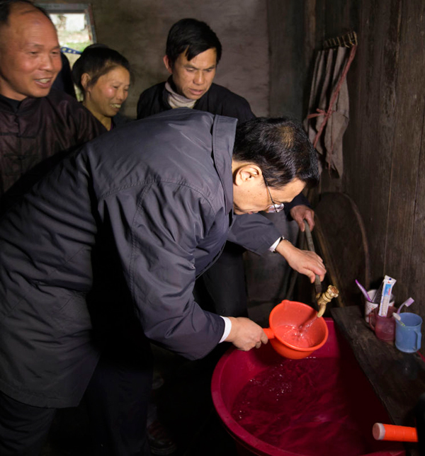 李克強在去年政府工作報告中承諾,全年再解決6000萬農(nóng)村人口飲水安全問題。13日,他走進貴州黎平縣蒲洞村貧困村民吳龍乾家簡陋的廚房,擰開水龍頭,用水瓢接水細細察看水質(zhì)。總理叮囑有關(guān)負責(zé)人:讓山區(qū)群眾喝上安全放心的飲用水,這是政府的硬承諾,絕不能打折扣!