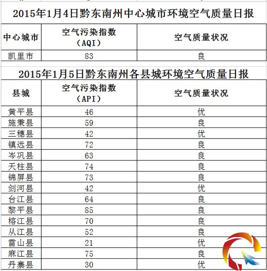 2015年1月5日黔東南州各縣(市)環(huán)境空氣質(zhì)量日報(bào)