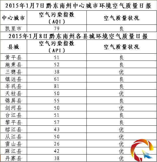 2015年1月8日黔東南州各縣(市)環境空氣質量日報