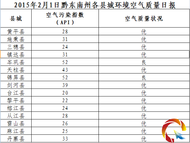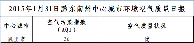 2015年2月1日黔東南州各縣(市)環境空氣質量日報