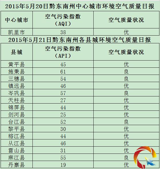 2015年5月21日黔東南州各縣(市)環境空氣質量日報